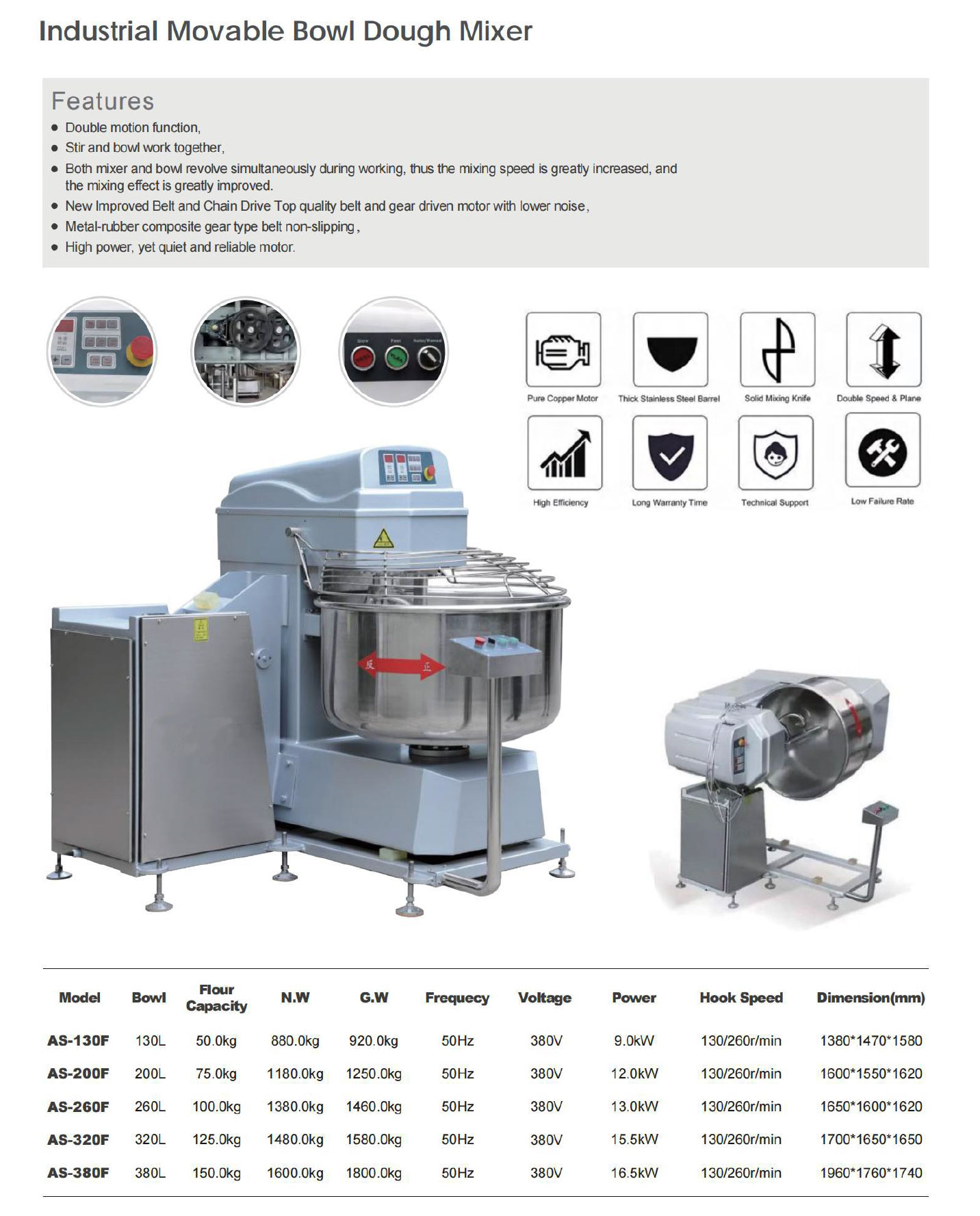Industrial Movable Bowl Dough Mixer